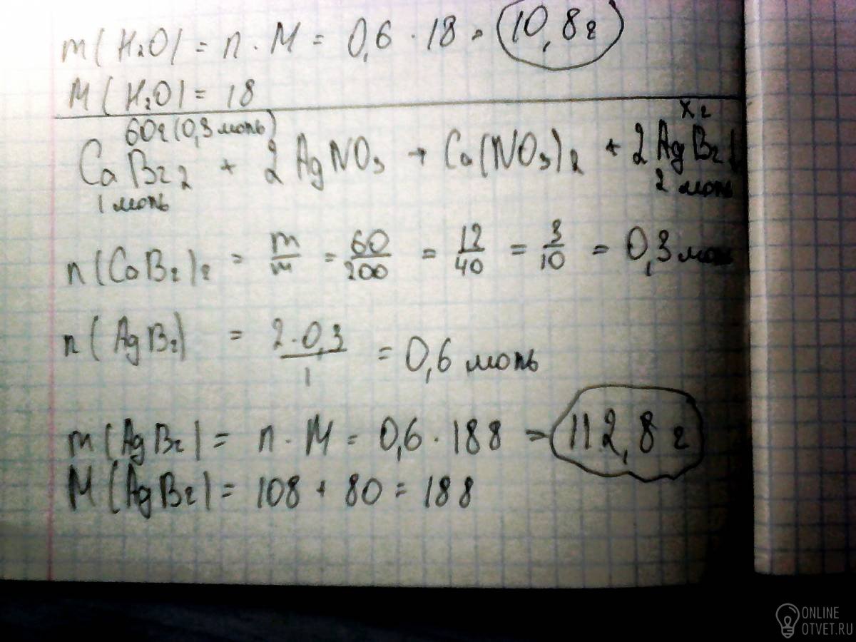 Вычислите массу осадка, образовашегося при взаимодействии бромида кальция массой 60 г. с нитратом серебра.