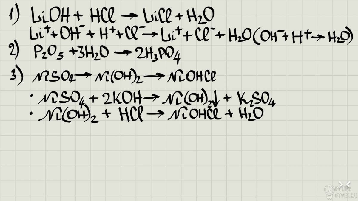 1)Напишите в молекулярной и ионной формах уравнения сл реакций LiOH+HCl