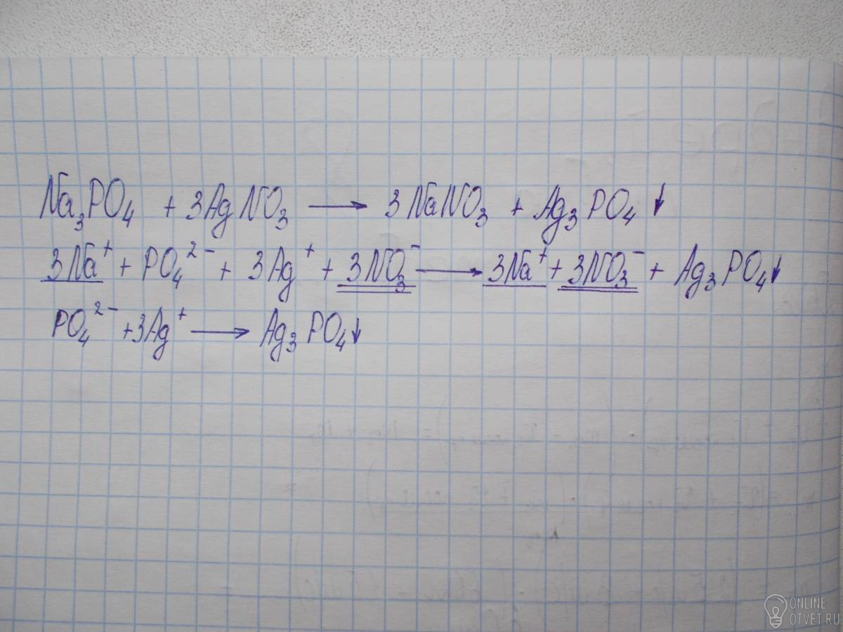 NaPO4+3AgNO3= 3 NaNO3+Ag3PO4 Составить полное и сокращенное ионное уравнение