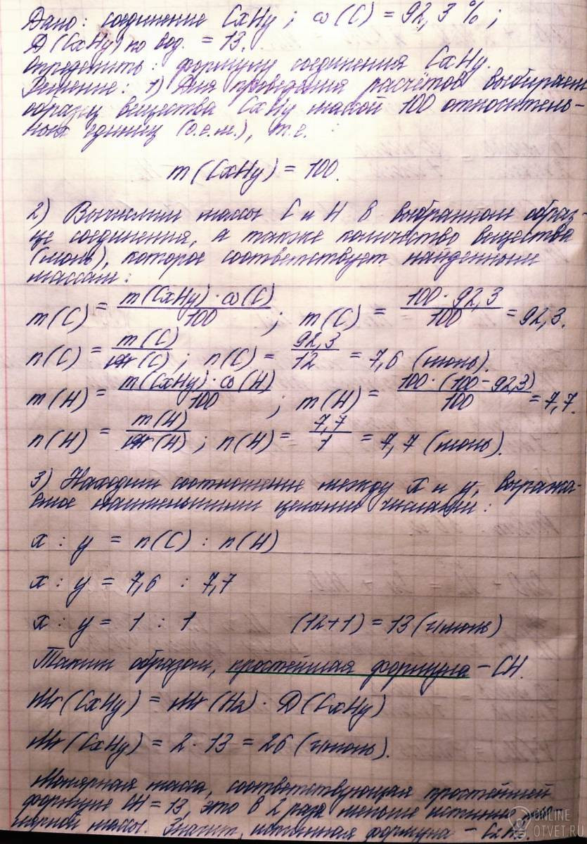 Встановіть молекулярну формулу вуглеводню, масова частка Карбону в якому 92,3%. Відносна густина газу за воднем 13.