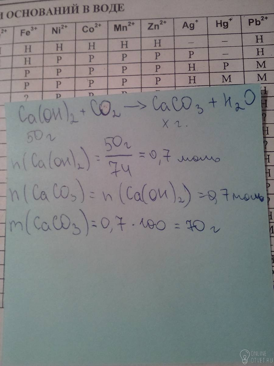 Определить массу карбоната кальция,который образуется в результате взаимодействия 50гр. гидрооксидов кальция и оксид углерода 4.