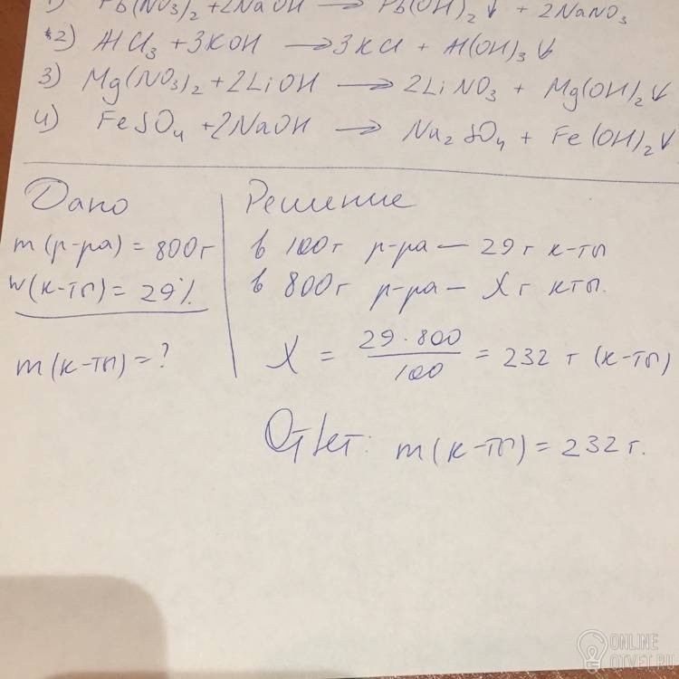 Определите массу вещества в 800 г 29% раствора кислоты