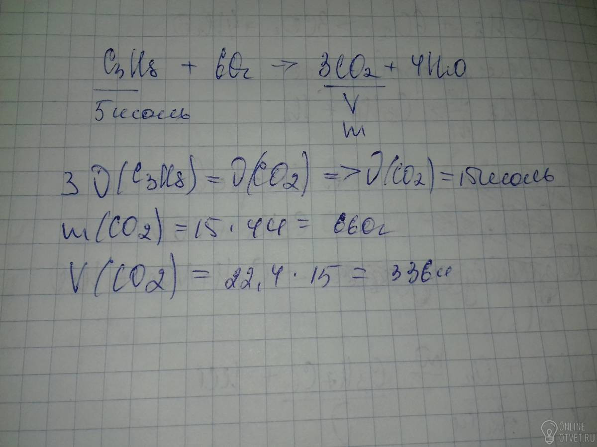 Сколько литров и килограммов оксида углерода (1V) получится при сгорании 5 моль пропана?