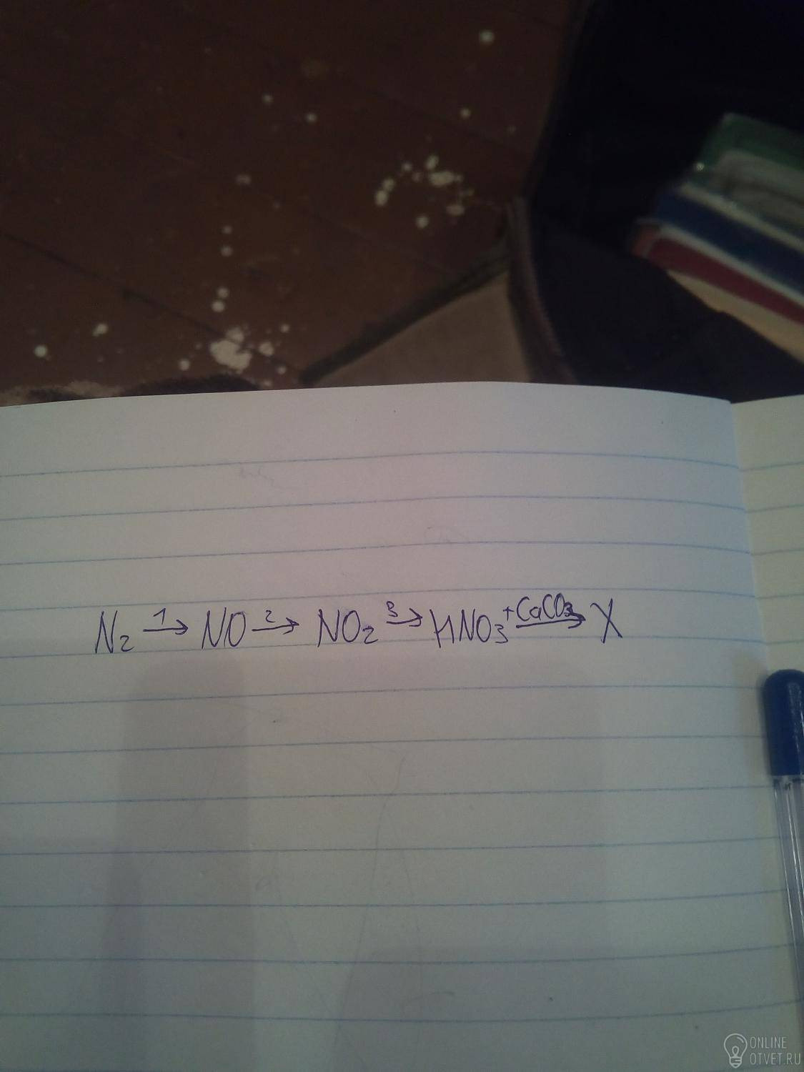 3) 4NO2 + O2 + 2H2O ⇒ 4HNO3