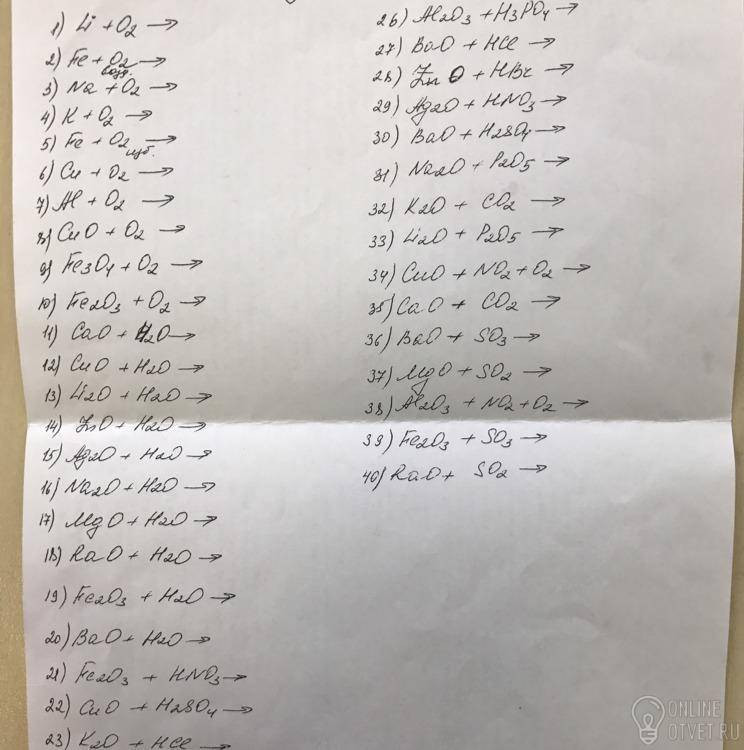 Основный оксид + кислота = соль и вода