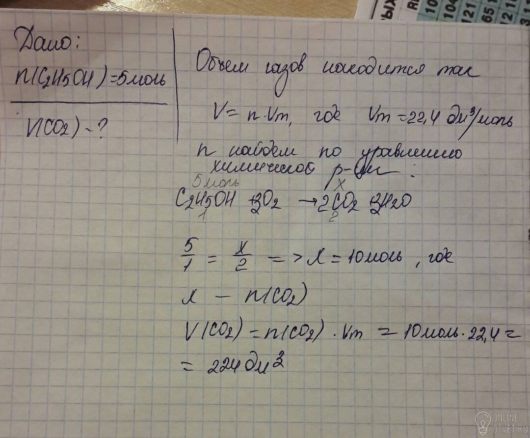 Какой объём будет занимать CO2,образовавшийся при сгорании 5 молей этанола?