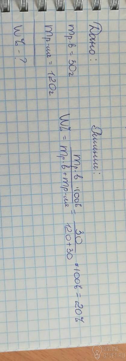 Вычислите массовую долю нитрата кальция в растворе,если для его приготовления взяли 30г соли и 120г воды.