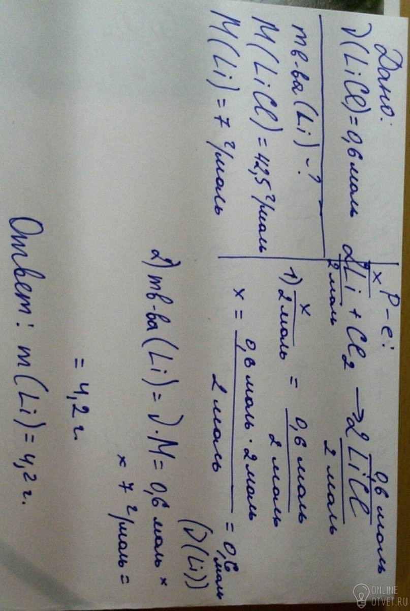 2. Вычислите массу лития, необходимого для получения хлорида лития количеством вещества 0,6 моль.