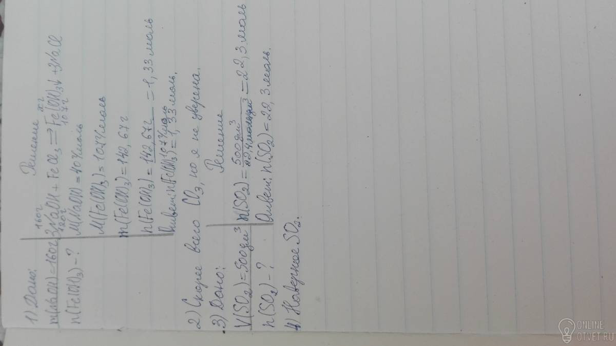 Помогите пожалуйста с химией, решить задачи. Очень прошу!!! 1)Определите количество вещества осадка, который образуется при взаимодействии хлорида железа (3) и 160г гидроксида натрия.