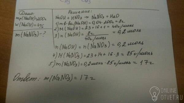 2) Вычислите массу соли, образующейся при взаимодействии 200 г 4% раствора гидроксида натрия с азотной кислотой.