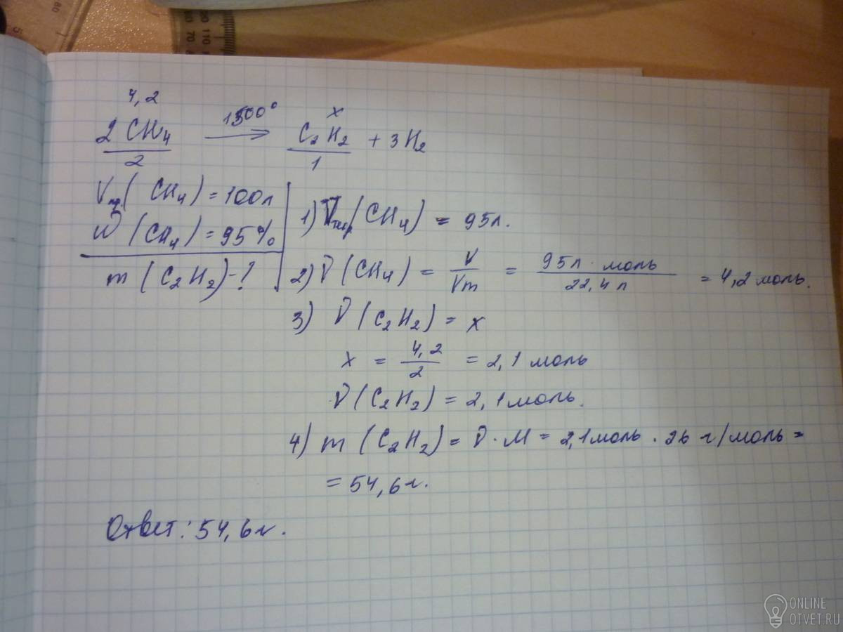 Яку масу ацетилену можна отримати зі 100 л (н. у.) природного газу, який містить 95 % метану?