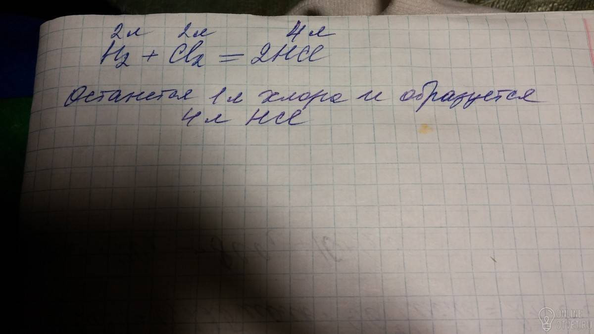 3)Смесь, состоящую из 2л водорода и 3л хлора взорвали в закрытом сосуде. Какие газы будут находиться в сосуде после взрыва?