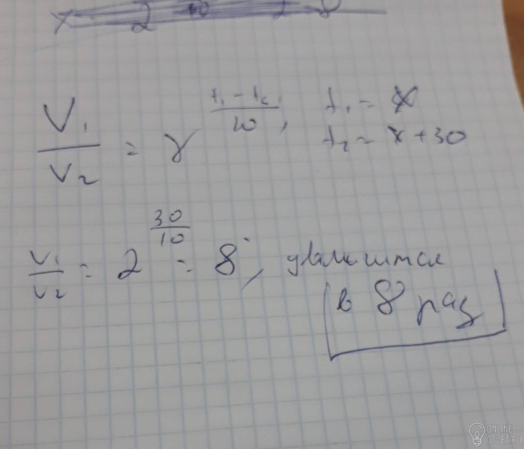 Как изменится скорость химической реакции при повышении температуры на 30 C, если температурный коэффициент равен 2?