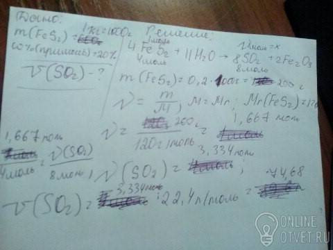 Задача. Какой объем сернистого газа (у.н) выделится при обжиге 1 кг Пирита ( FeS2) , в котором содержится 20% примесей