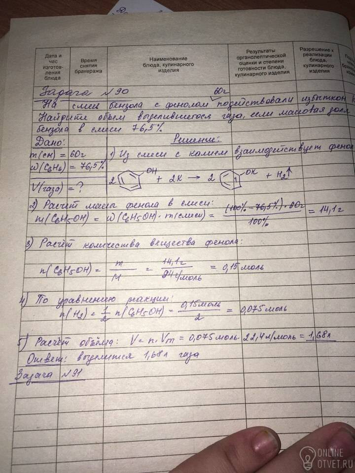 На смесь бензола с фенолом массой 60 г подействовали избытком калия. Найдите объем выделившегося газа (н.у.), если массовая доля бензола в смеси составляет 76,5%