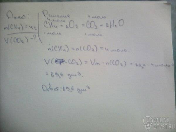 Объём углекислого газа образовавшегося при сгорании 4моль метана.( полное решение)