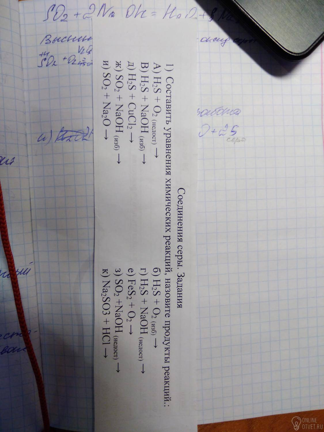 ж)SO2+2 NaOH(изб.)=Na2SO3+H2O