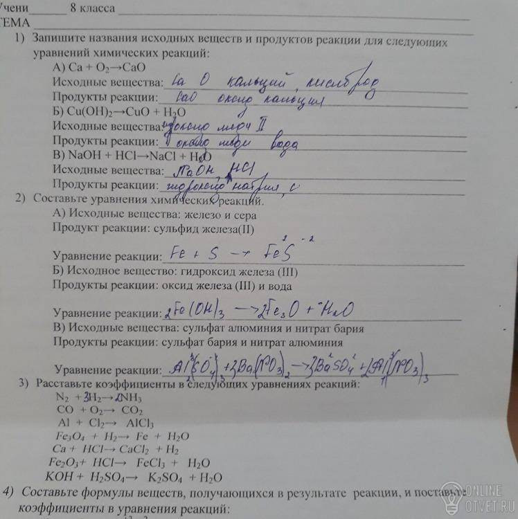 5) Fe2O3 + 6HCI = 2FeCI3 + 3H2O