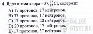 В данном случае ответ: с) 17 протонов, и 20 нейтронов(атомная масса - количество протонов = кол-во нейтронов)