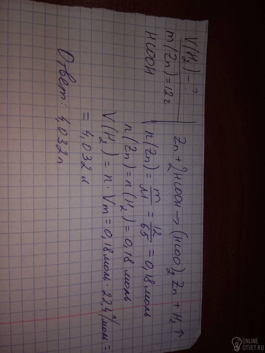 водорода выделится при взаимодействии 12 граммов цинка с муравьиной кислотой . Подробно с дано и тд плез