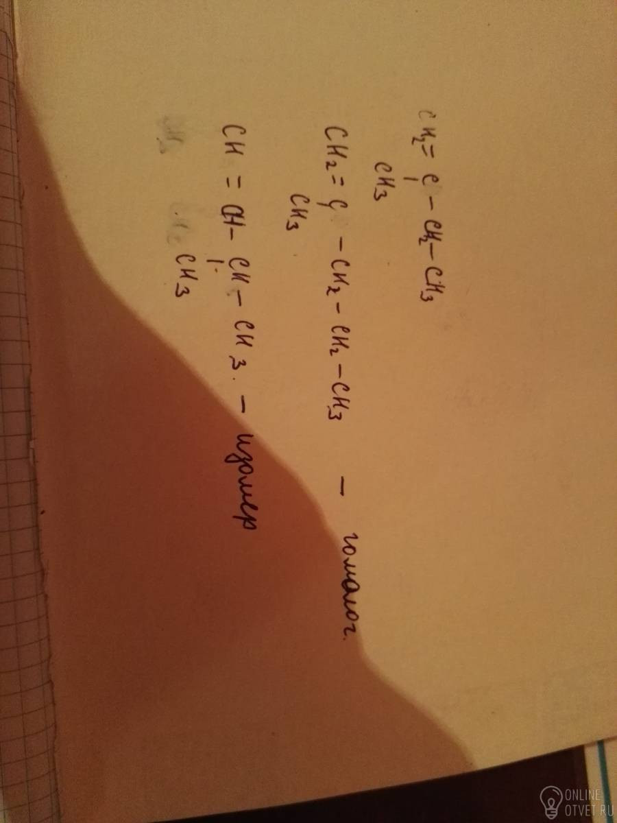 Напишите формулы одного гомолога и одного изомера для соединения: 2 - метилбутен-1