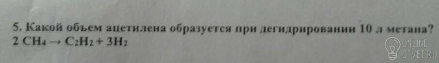 Ответ: при дегидрировании 10л метана образуется 5л ацетилена.