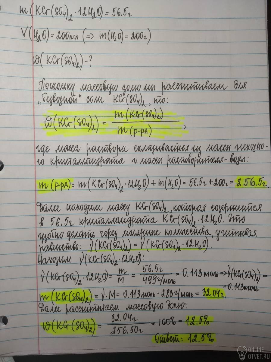 Формулы квасцов KCr(SO4)2*12H2O