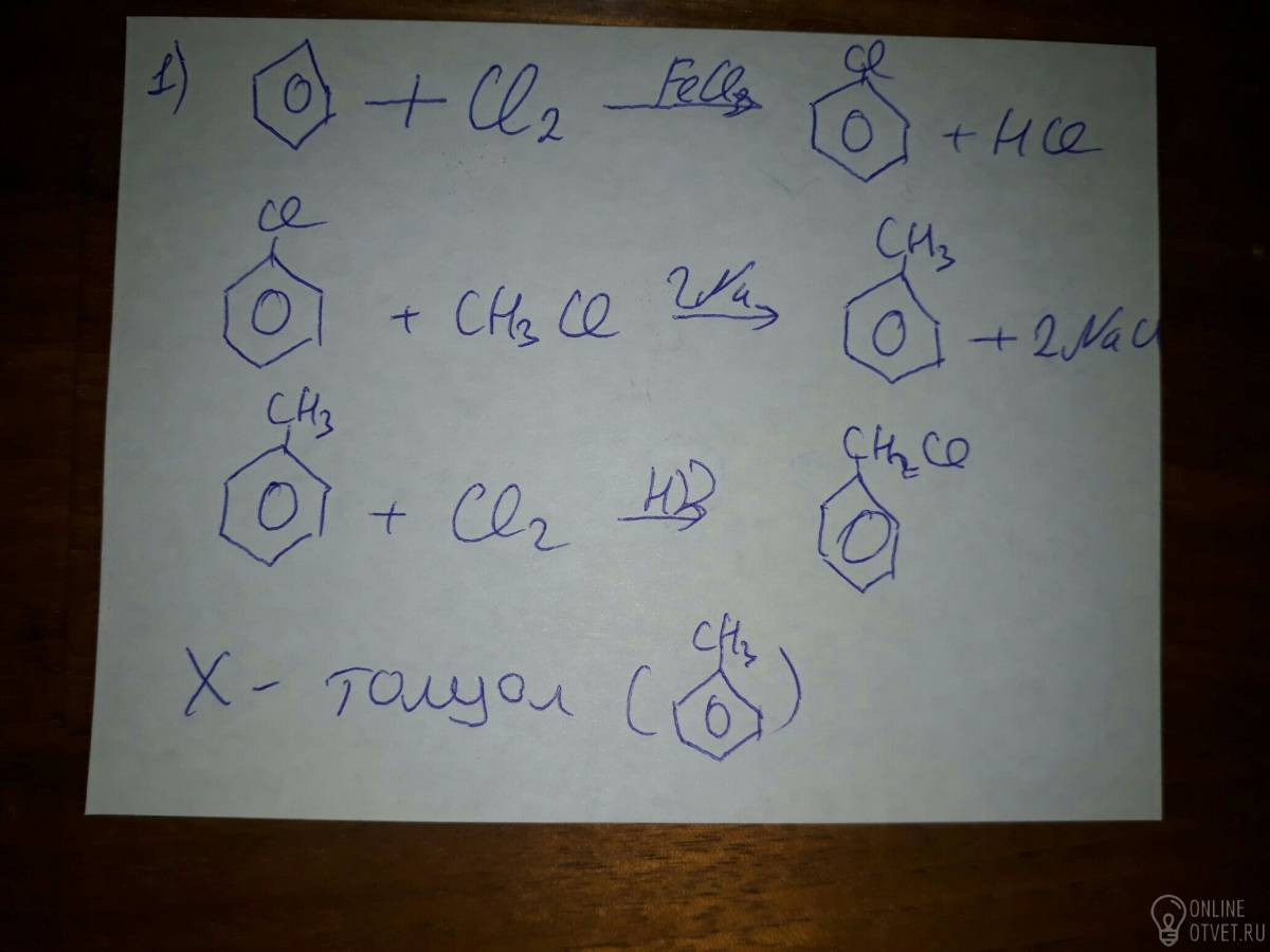 C6h6-c6h5cl-x-c7h7cl-бензиловый спирт-бензальдегид-бензойная кислота- бензилбензоат
