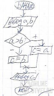 Составить блок-схему и записать на алгоритмическом языке алгоритм нахождения большего из двух чисел.