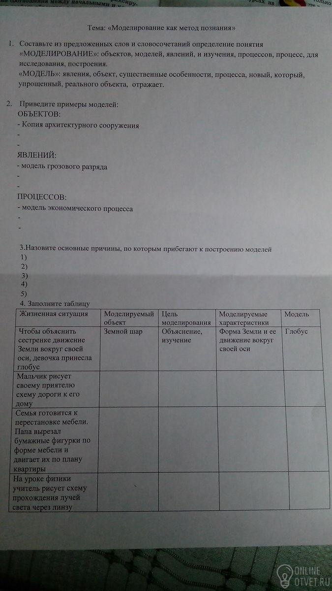 1. Объектов, моделей, явлений, и изучения, процессов, построения