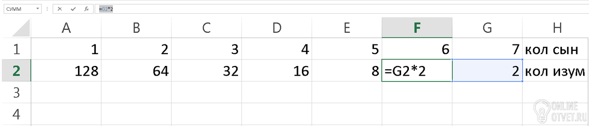 У царя было семь сыновей. В сундуке лежали изумруды. Пришел первый сын и взял половину того, что было. Пришел второй сын и взял половину того, что осталось и т.д. Каждый из сыновей приходил и забирал половину того, что осталось. Наконец, пришел последний, седьмой сын и увидел почти пустой сундук – с двумя последними изумрудами. Сколько изумрудов было первоначально?