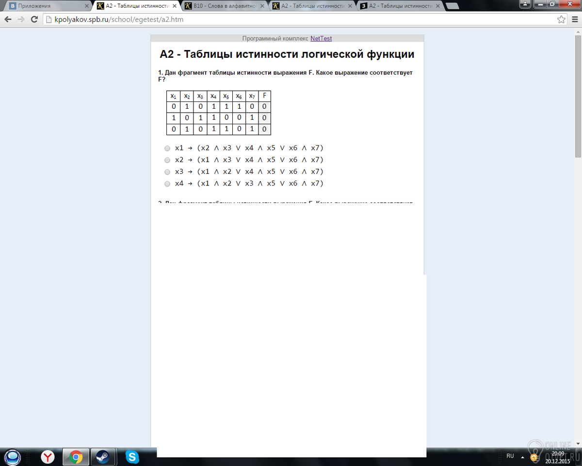 A2 - Таблицы истинности логической функции