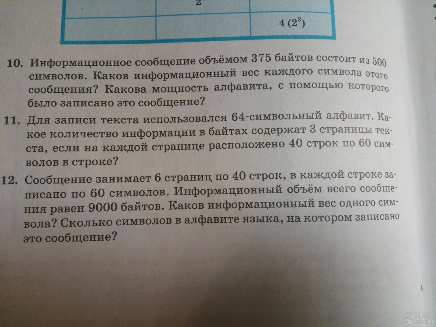 А так... 375 / 500 = 0,75 байта на символ или 0,75 * 8 = 6 битов. 2^6 = 64 символа. Это и есть мощность алфавита.