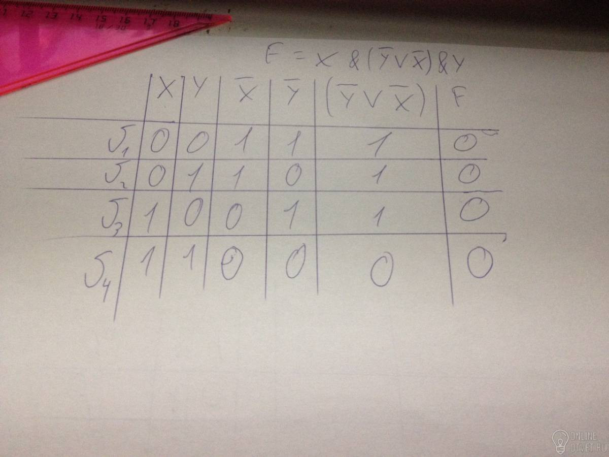 Составьте таблицу истинности для следующей логической функции: F=X&(¬Y v ¬X)& Y