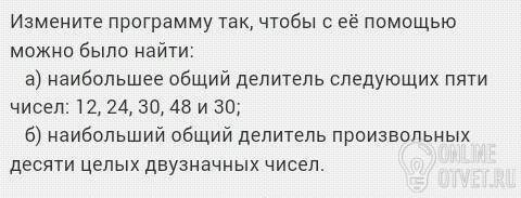 Чтобы найти наибольший общий делитель нескольких натуральных чисел, надо: