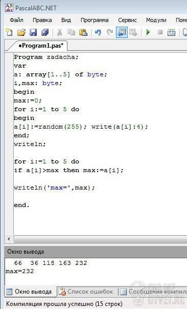 Дан массив натуральных чисел из пяти элементов найти наибольший элемент .срочно пж люди выручайте