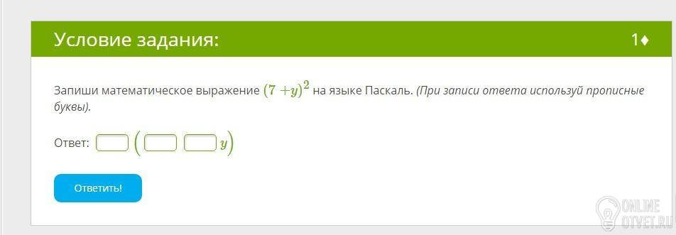 Не нашли подходящего ответа на вопрос или ответ отсутствует? Воспользуйтесь поиском по сайту, чтобы найти все ответы на похожие вопросы в разделе Информатика.