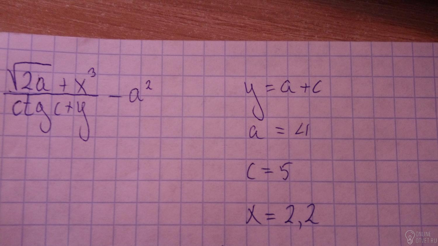 WriteLn((sqrt(2*a)+x*x*x)/(1/Tan(c) +y) -a*a);