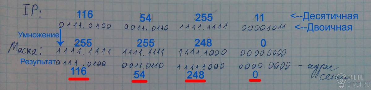 Найдите адрес сети IP-адреса :116.54.255.11116.54.255.11 и маски 255.255.248.0255.255.248.0. В ответе укажите последние два байта адреса в десятичном виде. Разделители использовать не нужно.