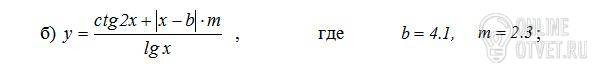 y:=(cos(2*x)/sin(2*x)+abs(x-b)*m)/(ln(x)/ln(10));