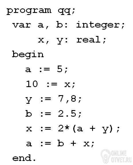 var a, b, x, y: real;