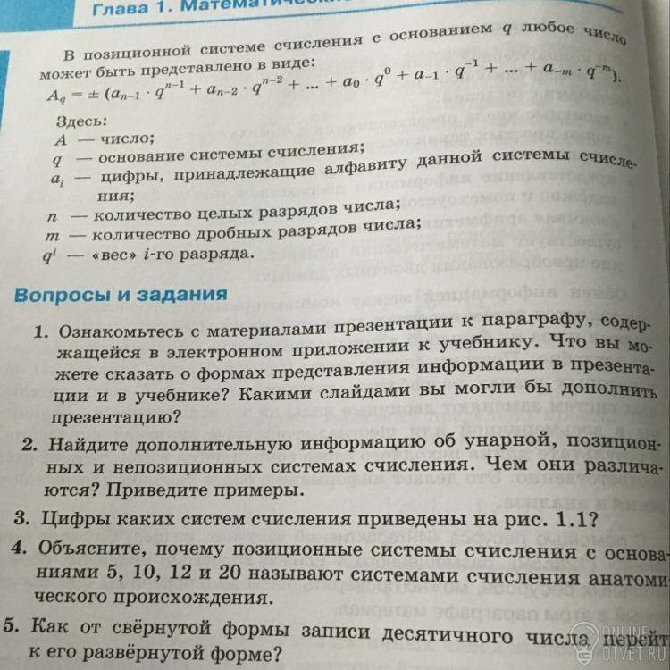 Вклад каждой цифры в величину числа зависит от её положения в последовательности цифр, изображающей число.