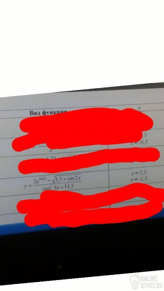 =(2*EXP(LN(ABS(A1)))-КОРЕНЬ(1,5+SIN(2*A1)))/(СТЕПЕНЬ(COS(3*A1);2)+11,5)