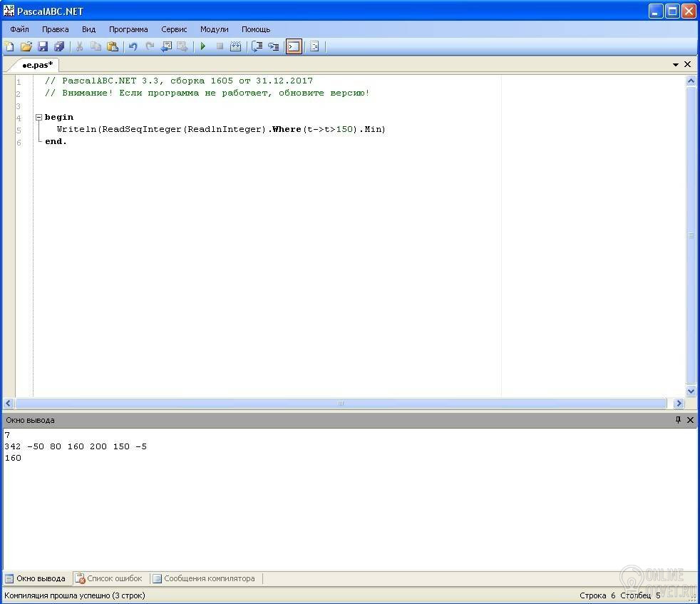 Напишите программу котораяв последовательности натуральных чисел определяет минимальное число, большее 150. Программа получает на вход количество чисел в последовательности, а затем сами числа. В последовательности всегда имеется число, большее 150.