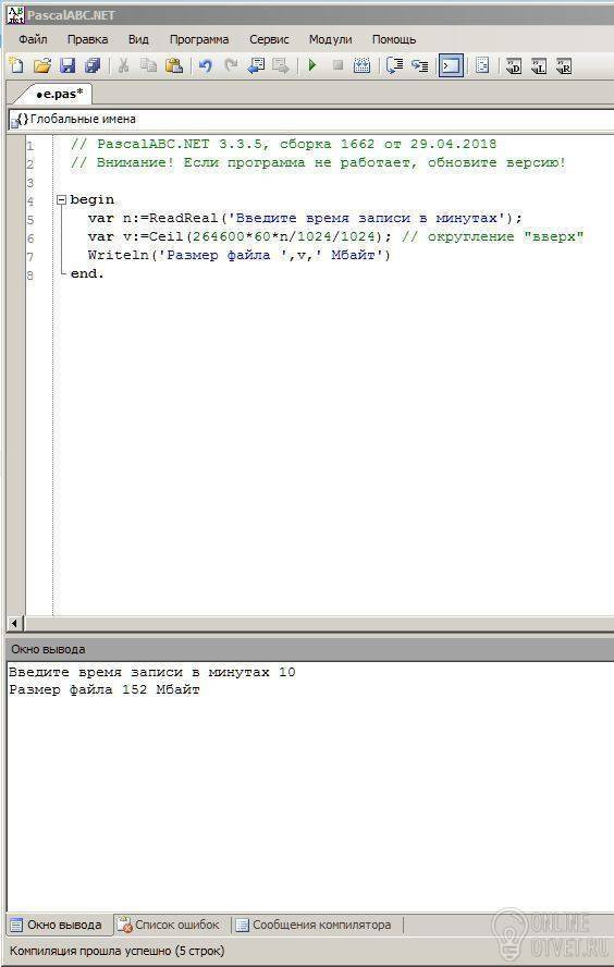 var n:=ReadReal('Введите время записи в минутах');