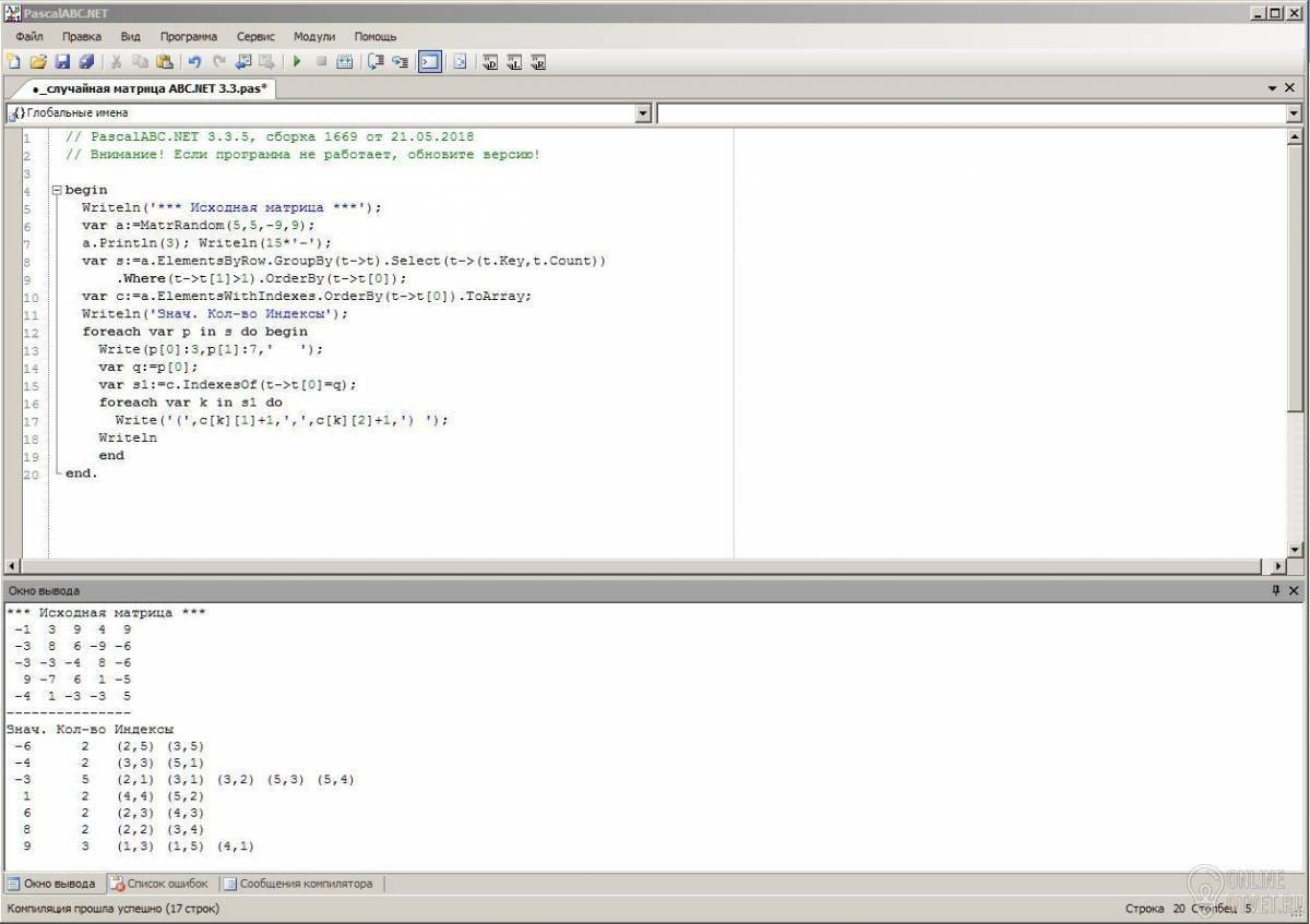 Writeln('*** Исходная матрица ***');
