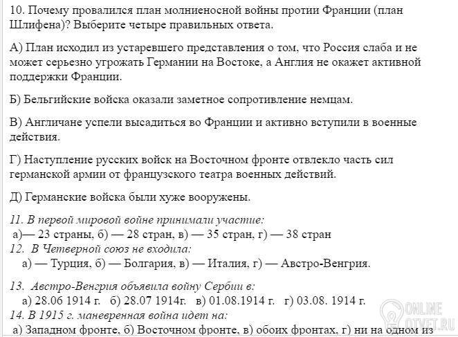 а) Западном фронте, б) Восточном фронте, в) обоих фронтах, г) ни на одном из них.