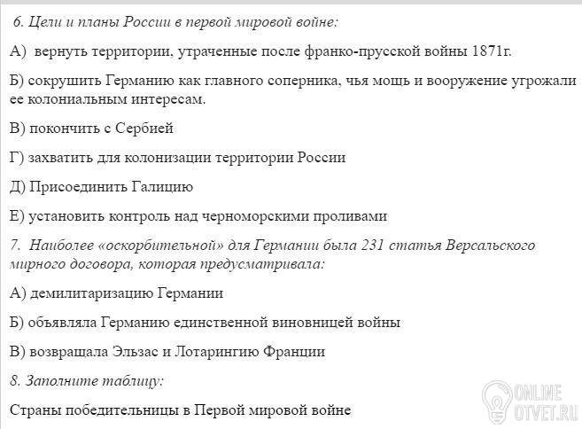 1. Назовите причины первой мировой войны.