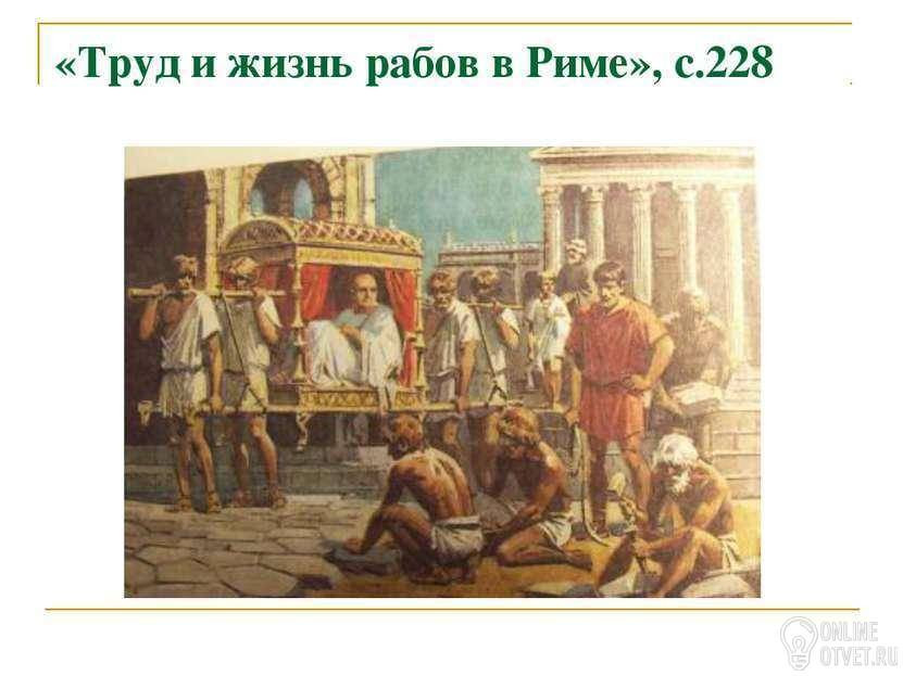 Раб считался собственностью своего владельца. Его можно было продать как вещь. Рынки рабов существовали повсюду. Главный из них находился в Риме на Бычьем форуме. Здесь чередоваться дни для продажи и скота и рабов.