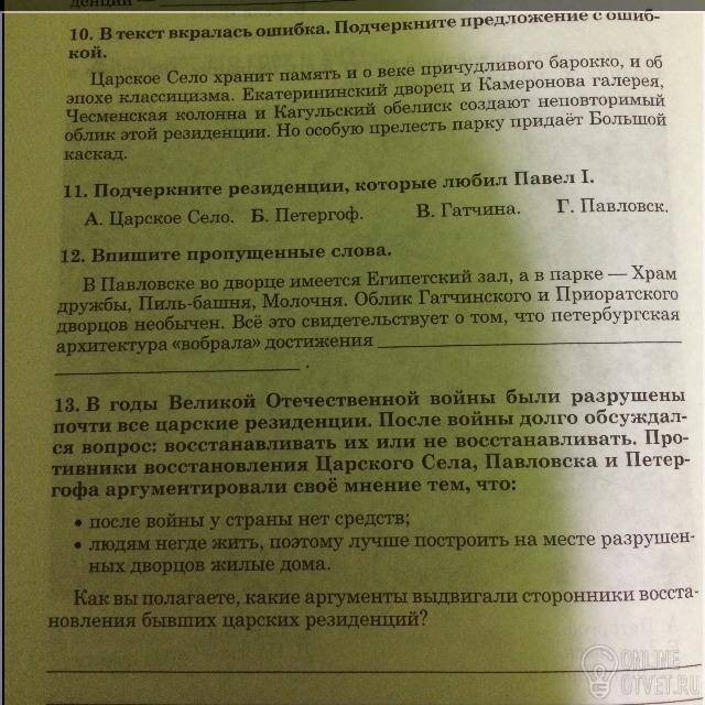 10)Ошибка: лишнее слово Большой Каскад т.к. все остальные объекты находятся в Царском селе,а он в Петергофе.